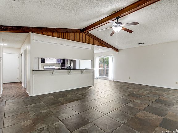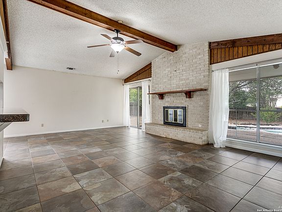 Central brick fireplaceNeutral paintOpen floor planGas cookingTile flooringSolid surface countersNew carpet