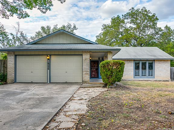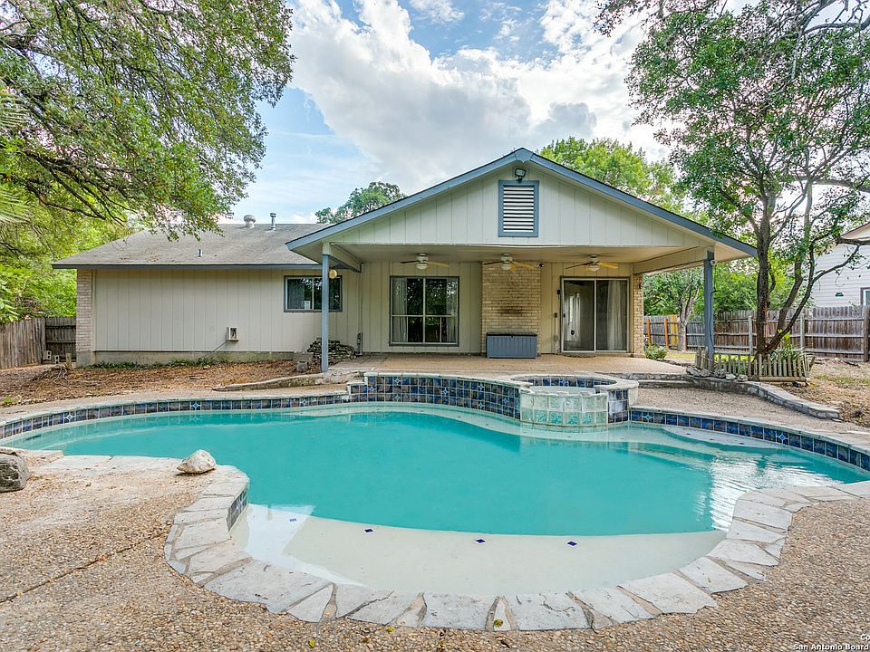Nicely appointed single story located on a cul-de-sac. Home is situated on 1/3 of an acre lot & offers an in-ground pool w/ an expansive covered patio perfect for entertaining! Interior has open floor plan adorned with neutral paint, tile flooring, and central brick fireplace. Galley style kitchen includes dark cabinetry complimented by solid surface counters, gas cooking, & views to pool. Primary w/ en-suite has separate shower & tub. Garage has workspace and 240 EV charger. Fresh exterior paint (2025) & new carpet (2025)