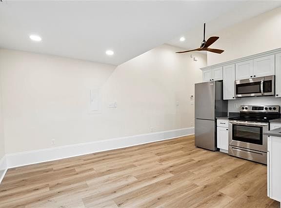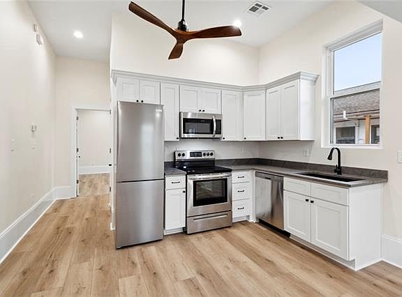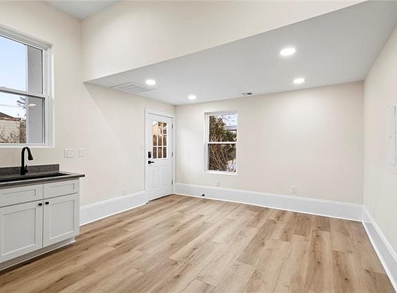 Impeccably finished and recently renovated, this second floor rear unit presents a prime location nestled between the St Charles Ave and Carondelet St. Enjoy unparalleled convenience with proximity to the vibrant Mardi Gras parade route and the iconic streetcar line. Step into a beautifully designed space featuring an airy open layout seamlessly connecting the living, dining, and kitchen areas. The kitchen boasts ample storage cabinetry, brand-new stainless steel appliances (incl. a dishwasher) and stunning Quartz countertops that elevate the aesthetic. Luxury wood vinyl flooring throughout the unit enhances its cheerful ambiance while adding a touch of sophistication. This is a second floor unit accessed by stairs. This unit offers an interior and private washer/dryer.