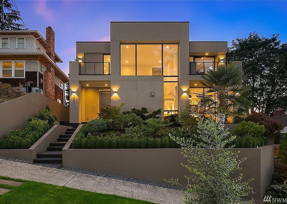 I must confess, I have a weakness for modern homes that are smartly conceived & executed. Only 5 years old, this chic, statement-making example is tucked into sought-after Madrona & sits high off the street to afford total privacy & expansive westerly views. At once: practical, dramatic, and timeless (& in impeccable condition!). Big walls for art & banks of windows that flood this home with sunshine. Flexible, stylish space & living options abound on the main floor with 20' ceilings. Upstairs, 3 en-suite bedrooms each with their own private deck. One of this home's greatest virtues is its proximity to the city and the trendsetting strip up on 34th, with its mouthwatering mecca of eateries & clever boutiques. Modern + location=killer combo!