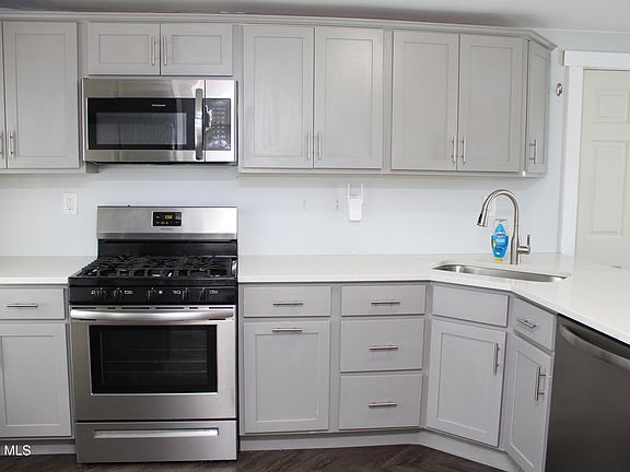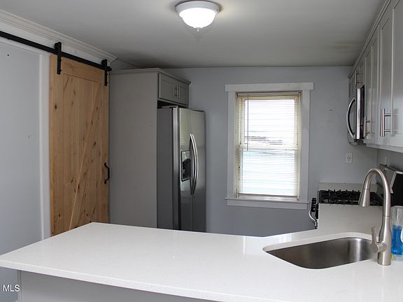 Situated on a quiet street, this home has a great layout & is filled with beautiful updates. Newly finished Eat-in Kitchen w/ custom cabinets, quartz counter tops and stainless steel appliances. A Great pantry w/ sliding barn door, tons of shelving & washer/ dryer. Large Dining room with wood floors continuing into first floor, Living room, other room us for potential office space or play room. Updated full bathroom on first floor as well. Additional carpeted Back room just off Kitchen( use for family room/ bedroom- it has a big closet/hobby room) walks out to deck & backyard. Unique railed staircase makes it easy to move furniture into both upstairs bedrooms, newly carpeted. Enclosed front porch. Additional side porch entry. Off street parking.