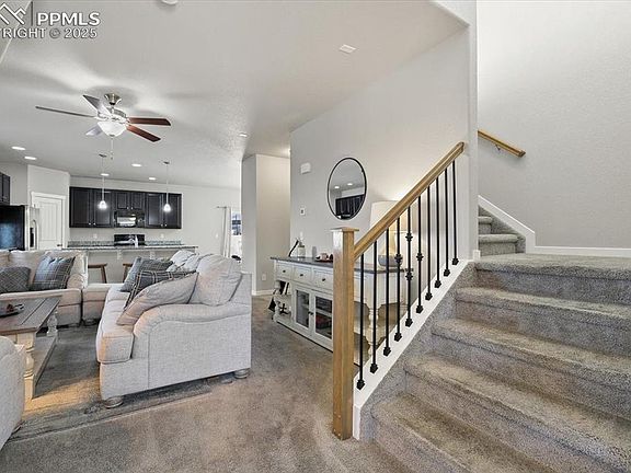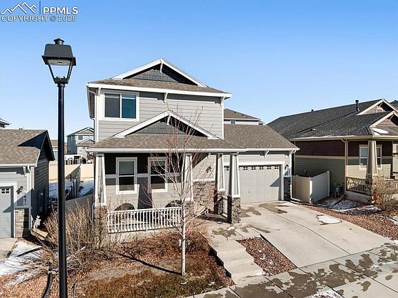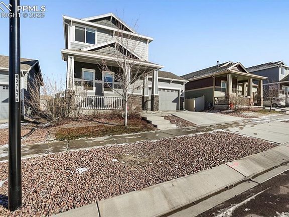 Welcome to the perfect blend of Colorado mountain living and unmatched convenience! Located in the vibrant Broadmoor View at Spring Creek neighborhood, this stunning 4-bedroom, 3.5-bathroom, 2-story home offers a prime location near Union Blvd and HWY 24. Enjoy easy commutes to military bases, shopping, recreation, and Downtown Colorado Springs, which is just 5 minutes away. With approximately 2,600 square feet of thoughtfully designed living space on a 5,000-square-foot lot, this home is ideal for both relaxation and entertaining. The fully landscaped backyard features a composite deck, creating a serene outdoor retreat. Step up to the inviting covered front porch and take in breathtaking mountain views—a perfect setting for morning coffee or evening sunsets. Inside, the open floor plan welcomes you with a spacious living room, an expansive kitchen with granite countertops, modern appliances, ample cabinetry, and a large dining area. Sliding doors lead to the backyard, seamlessly blending indoor and outdoor living. Upstairs, the luxurious owner’s suite boasts a walk-in closet and a spa-like ensuite bathroom with dual vanities, tile flooring, a soaking tub, and a separate shower. Two additional bedrooms, a full bathroom with dual sinks, and a conveniently located laundry room complete the upper level. The fully finished basement offers a versatile second living area, perfect for movie nights or entertaining, along with an additional bedroom and full bathroom which maximizes the home’s functionality. This home truly has it all—space, style, functionality, and a central location. Don’t miss your chance to make this exceptional property your own!