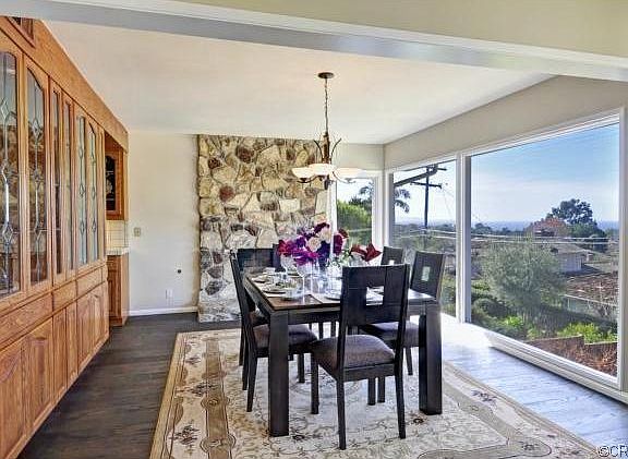 Peaceful Setting in a desirable Lunada Bay area neighborhood. 4 Bedrooms, 2.5 baths, Family Room, and Game Room in 2,492 sqft of living space. The Living and Dining Room has walls of windows to enjoy the magnificent Pacific sunsets and partial ocean views! The windows also overlook the pleasant back yard and tree view. There are tastefully refinished wood floors through the living areas, fresh interior paint, smooth ceilings, and many updated lighting fixtures and windows. The dining room has a stone fireplace which adds warmth to your entertaining. There is also built in china cabinet and wet bar with accent lighting. The kitchen has plentiful cabinets, built in sub zero refrigerator, Jen Air stove/oven and Maytag dishwasher. The bay style window looks out over the front pleasant landscape. The upstairs bath has tasteful pedestal sink, Kohler toilet, and bidet. Natural light pours in the huge skylight and there is a "rainfall" style shower head and built in bench. The family room w