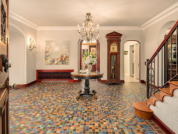 The lore of an Edwin Ivey legacy home; majestically sited on 5 city lots. Lovely formals & detailing, but most importantly, this home lives for today with a fantastic floorplan, incredible amenities & a killer indoor-outdoor flow. The kitchen (complete with a bespoke Officine Gullo cooking island) flows into the family room which opens to the outdoor patio: grill, drinks fridge, fireplace, heaters & more. Straight ahead: a florentine-inspired pool/hot tub for 8. More fun...a pickleball court & trampoline! Wine cellar you ask? Yes, 1,250 bottles. 4 car garage & secure motor court for 10 cars? Yes. Indoor golf simulator? (I am not kidding you!) Home gym plus a separate apartment ~ the list goes on & on! Nine palms...resort living at home!