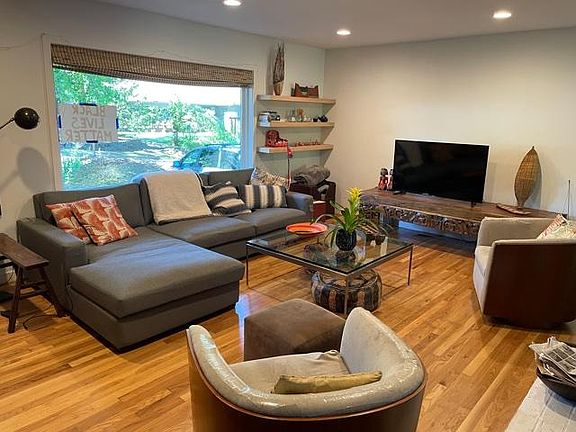 Remodeled 3 bedroom, 2 bathroom mid-century house in Palisades neighborhood two blocks from Lakeridge High School. House sits on a huge corner lot with a certified backyard native habitat, raised garden beds, large new deck overflowing with planters of jasmine and bamboo, and outdoor barrel 4-person sauna. Master suite with multiple closets and free-standing luxurious bathtub. Main level features open floor plan, newly refinished hardwoods, recessed lighting, wood burning fireplace, new stainless appliances and large island in kitchen. Lower levels feature heated floor tiles, cute wallpapered bathroom, large family room with built in bamboo desks and wood burning fireplace. Laundry/storage room with W/D. Walking distance to the New Seasons market. Lots of natural light and warmth. A/C. Attached 2 car garage and RV parking lot. No smoking. Utilities not included in rent.