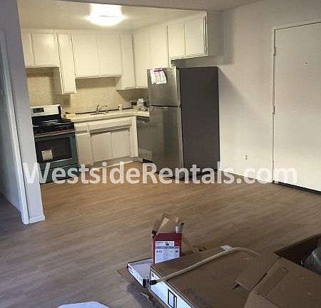 Newly renovated studio apartment, all stainless steel appliances, new wood laminate flooring Lower unit 1-car Carport parking. Newly renovated, bright, spacious studio apartment in a very convenient Westwood location. All new wood laminate flooring (no carpet) just installed. All new stainless steel appliances--refrigerator, dishwasher, stove, microwave. New light fixtures, new bathroom fixtures. Wall unit heating and AC unit. Community laundry room with 2 washers2 dryers. 1 car covered carport parking in the rear. Please be advised units share common utility meters, so owner charges $100 flat fee per month for all basic utilities (water, electricity, gas, trash, gardner) for a total of $1,700 per month. Located within walking distance to bus lines, WestwoodUCLA, and a wide array of restaurants, coffee, groceries and retail. No pets--non-negotiable. Non-smoking property.
