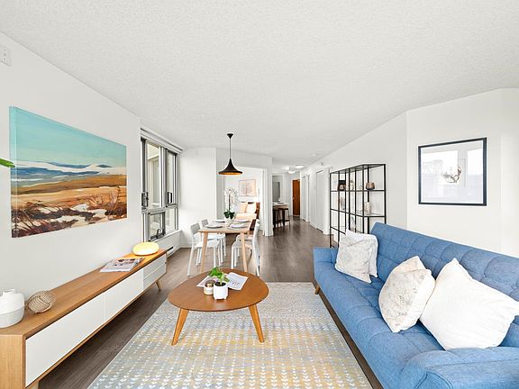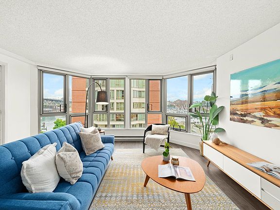 Experience waterfront luxury at this updated 2 bed 2 bath residence, perfectly positioned steps from Vancouver’s iconic Seawall. From sunrise to sunset, take in sweeping panoramic views of the ocean, marina, Granville Island, and the Burrard Street Bridge. Freshly painted & thoughtfully renovated, this unit features a modern feel with refined finishes and laminate flooring throughout. Updated kitchen with bar seating opens to bright dining and living room. Primary bedroom includes ensuite bathroom & walk through closet. Located in one of Vancouver’s most sought-after neighbourhoods, enjoy world-class dining, boutiques & waterfront strolls just outside your door. Prepaid lease until 2084. Includes same-floor storage locker & underground parking stall. OPEN HOUSE SUN NOV 30TH 2:00-4:00PM.