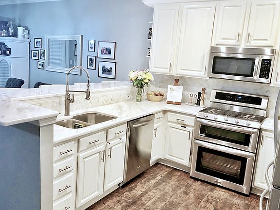 Buyer's agent commission honored. ALL APPLIANCES STAY. Gig Speed Internet enabled. Totally updated open concept townhouse in Williams Park just walking distance to Smyrna Market Village and 2.3 mi from SunTrust Park. Features a two-car garage with custom storage shelving and closet; Completely remodeled custom on-trend 5-piece Master bath with dual vanities; large master closet off master bath with new custom racks and shelves; Updated on-trend premium white with gray veined bi-level quartzite counter tops in kitchen (also in master bath) with matching herringbone backsplash, high-end quiet stainless steel Kitchen Aid appliances, premium coil pull-down faucet; Updated bottom floor with high-end Pergo dark brown highly scratch resistant laminate flooring; brand new upgraded carpet (and padding) throughout second story and steps; Custom 200 sqft blue-stained deck and white-stained pergola with hanging purple wisteria vines upon a custom privacy wood lattice; Custom outdoor fire pit surrounded by a square paver patio with seating surrounded by Bermuda grass trimmed by the HOA-paid lawn service.