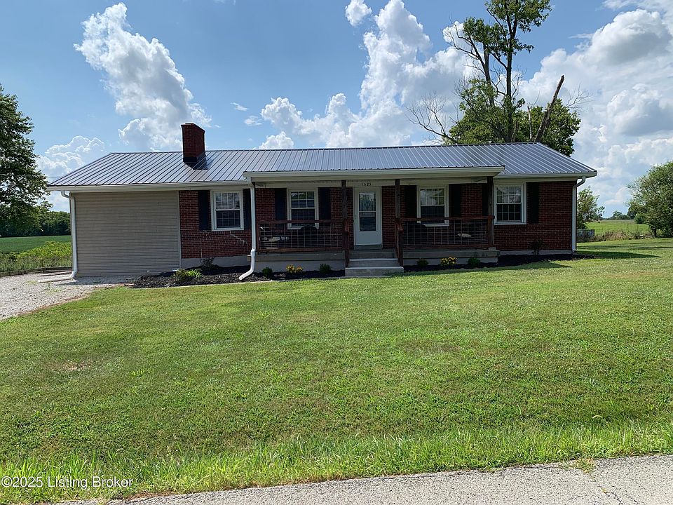 Welcome to this Brick Ranch 1337 Sf home with 3BR's, 2BA's, Custom Kitchen w/pantry, custom soft close cabinets, butcher block counter tops, subway tile, floating shelves & a farmhouse sink. Living Rm. w/fireplace. Dining area open to LR, full bath has sliding barn door, floating shelves & shower/tub combo, it has a covered 8x25 front porch, 12x18 back deck, It offers a new metal roof & gutters in 2024, New HVAC in 2025, newer DH tilt windows, new Water heater, a room for washer/dryer, Furnace & storage. The Primary BR has a claw foot tub/shower and walk-in closet w/closet organizers & a sliding barn door and tiled floor. Storage bldg for lawn equipment, and a covered dog pen. All on 1.4 acres.