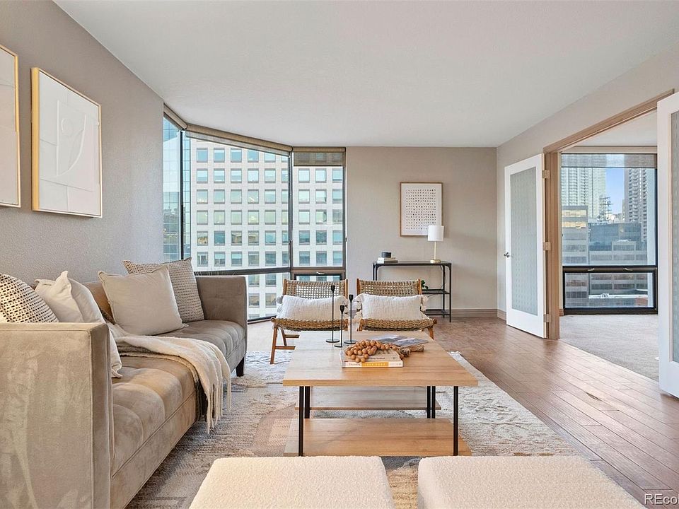 Welcome to elevated urban living in the heart of downtown Denver! Perched on the 12th floor of the iconic Barclay Tower, this corner unit,contemporary two-bedroom condo seamlessly blends modern sophistication with unparalleled convenience.Floor-to-ceiling windows frame breathtaking views of the iconic Clock Tower building and the city skyline.Natural light floods every corner of this meticulously designed space, creating an inviting and open atmosphere. The two bedrooms offer comfortable retreats,with the primary bedroom featuring an updated en-suite bath for a touch of luxury.The secondary bedroom is perfect as an elegant and beautiful home office space.The kitchen showcases stainless appliances, including a sleek NEW range/oven and provides the ideal space for culinary exploration.Whether you're entertaining guests or enjoying a quiet meal, the cityscape serves as the perfect backdrop.Living in the amenity-laden Barclay Tower means embracing a lifestyle of luxury and convenience.The building boasts a plethora of amenities:Plaza level with a communal garden, large seating area with grill stations and a natural oasis with trees, grass and a lovely view of the downtown city skyline.The rooftop level highlights a modern exercise gym/fitness center with western facing views of the rocky mountains and an incredible pool.The comprehensive HOA covers everything from 24-hour concierge services to with security check-in,clubhouse, on-site management,heat,bike storage,AC,cable,internet,trash and recycling, water, snow removal, parking and even laundry facilities. With a dedicated parking space,you have the freedom to explore Denver's vibrant downtown without the hassle of parking.From Larimer Square to Union Station,Coors Field,Ball Arena, and the Denver Performing Arts Center,the city's cultural and entertainment hubs are at your fingertips.Indulge in upscale dining or hop on the 16th Street Mall shuttle just moments from your doorstep,make this iconic address yours!