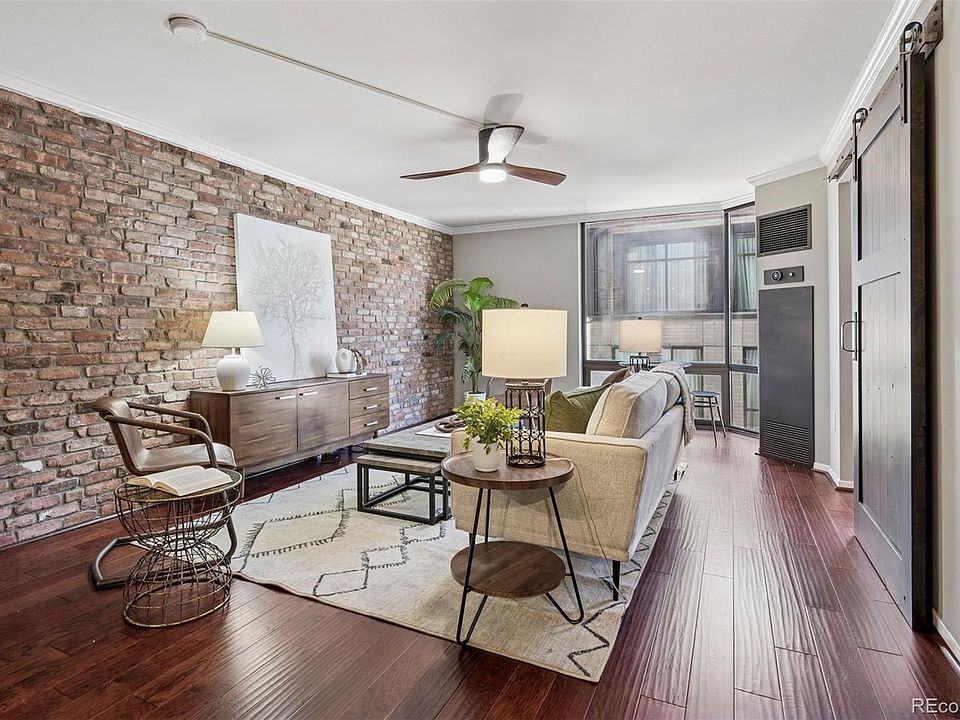 Sleek, casually-elegant one bedroom unit in the heart of all the action! This updated unit, located on the 12th floor of the stylish Barclay Tower, boasts over 800 square feet of smart, comfortable space, and includes a rare second half bathroom; creating an ideal easy living and entertaining home. The chef’s kitchen features all new LG and Bosch appliances, a convenient eat-in bar counter, new paint, sink faucet and more. The large and open living area welcomes you in with a stunning exposed brick wall, warm laminate hardwood floors, new ceiling fan and a large window that lets light pour in. Step through the amazing sliding barn door into the large Primary suite, complete with a second large window, new lighting, a large walk-in closet and the full Primary bathroom. This amazing unit is completed by an oversized parking space located in a preferred location within the secured garage. Residences of Barclay Tower enjoy numerous amenities including 24-hour concierge/security service, rooftop pool, a fitness center, clubhouse, and a friendly shared gas grills and firepit space. Step outside and find yourself in the middle of all that 16th Street, Larimer Square and LoDo have to offer, or enjoy the easy access to Ball Arena, Coors Field or DPAC – all just a few blocks away. Don’t miss this amazing unit!