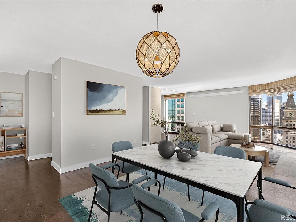 Experience breathtaking mountain and city views from this premier upper-floor residence at The Barclay, perfectly positioned above 16th Street and Larimer Square. Situated on the coveted southwestern corner, this residence is bathed in natural light throughout the day and offers a front-row seat to Denver’s spectacular sunsets. Inside, the thoughtfully designed floor plan centers around a custom chef’s kitchen featuring abundant cabinetry, stainless steel appliances, granite countertops, a coffee station, and a convenient eat-in bar—ideal for casual dining or entertaining guests. The primary suite captures the same sweeping views of the mountains and city skyline, complemented by an en-suite bath, a spacious walk-in closet, and the convenience of in-unit laundry. A flexible office or guest area enhances the home’s open-concept layout, providing versatility for work, guests, or creative pursuits. Residents enjoy access to The Barclay’s extensive amenities, including a state-of-the-art fitness center, rooftop sun deck, pool, hot tub, BBQ area, front desk service, full-time concierge, and a tranquil garden area. Located in the heart of Downtown Denver, residents enjoy effortless access to Union Station, the Theater District, and many of the city’s best dining, shopping, and nightlife options. Combining sophisticated design, modern comfort, and unbeatable location, this exceptional Barclay residence embodies the very best of urban living in Denver.