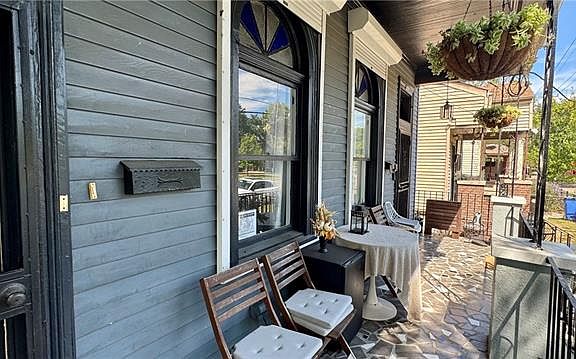 Stainless steel appliancesIn-unit washer and dryerWelcoming front porchRich hardwood floorsHigh ceilingsTimeless details