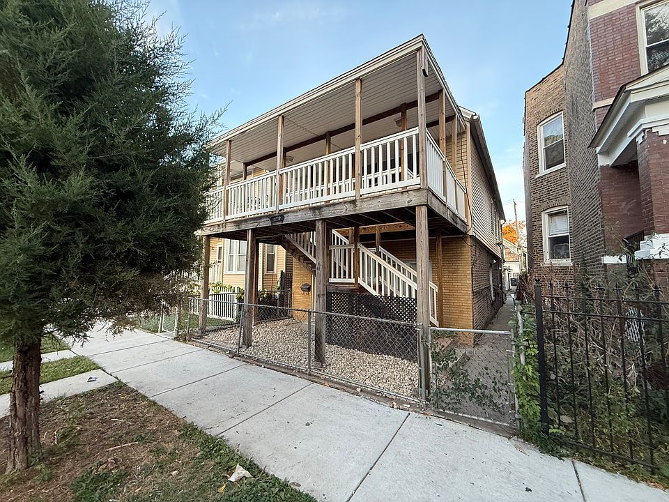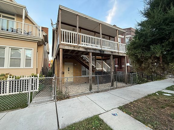 Classic Chicago 2-flat with large covered front porch and fenced yard