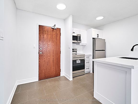 Welcome to this beautifully updated 1 bedroom plus den condo apartment offering modern finishes and exceptional convenience. The unit features a brand new kitchen with quartz countertops and new stainless steel appliances, complemented by new vinyl flooring throughout and freshly painted interiors for a bright, contemporary feel. The versatile den is perfect for a home office or additional living space. Includes 1 underground parking space and a locker. All utilities are included for added value and ease. Ideally located within walking distance to parks, Pickering Town Centre, shopping, and restaurants, with Pickering GO Station nearby and just a 1-minute drive to Highway 401 for effortless commuting.