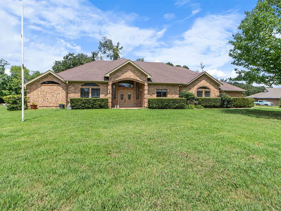 4 bedroom, 3.5 bath home with 3 car garage! This floor plan is amazing. New flooring and paint throughout! Master suite has his and her vanities with walk in closets, 2 bedrooms share a jack and Jill bathroom with separate vanities, then separate bedroom with its own adjoining bathroom. Half bath is just next to garage entry. Small office downstairs and a large bonus room upstairs. Plenty of room for a large family. Great kitchen with plenty of cabinet space and indoor grill, large living room with wood burning fireplace. 3 ac units and 2 water heaters. Large backyard has that park feel with a few scattered trees. Storage building. 90 mi to DFW, 20 mi to Cooper Lake.