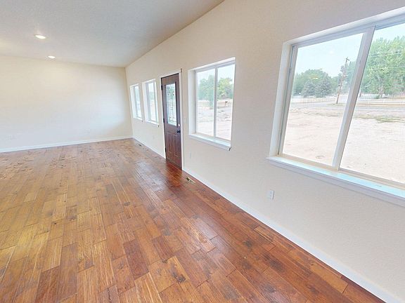 Brand-New 2,300 Sq Ft Home on a Country Lot Inside Riverton City Limits – Mountain Views & Room to Grow. Now complete and move-in ready, this brand-new 2,300 sq ft, single-level home offers the perfect blend of modern design, energy efficiency, and wide-open Wyoming living. Located on a 0.64-acre lot inside Riverton city limits, this property provides space for your future shop, RV pad, or both; full city utilities. Step inside to a light-filled, open-concept layout with 9-foot ceilings and hand-scraped hand paned hickory hardwood floors throughout that create a warm, inviting atmosphere. The gourmet kitchen features solid stone countertops, shaker cabinetry with soft close doors and drawers, a five burner gas cooktop, double wall ovens, and a walk-in pantry, offering both beauty and functionality for everyday living or entertaining. The primary suite serves as a private retreat with a walk-in closet and spa-style bath featuring an oversized stone & porcelain tile shower. Three additional bedrooms and a full guest bath provide plenty of flexible space for family, guests, or a home office. Energy efficiency and quality craftsmanship are built in, including an on-demand tankless water heater, Central HVAC system, Ceiling fans in all bedrooms and living room, quality cement coated siding with stone accents. This property offers city water, sewer, and natural gas—no well, septic, or propane required. Outdoor living is easy with a 48 ft covered front porch and covered back patio framing mountain views. A two car attached garage, concrete drive with gravel U-shape. The front and side of the house are sod with irrigation: this is a move-in-ready home. Experience country space with city convenience, just minutes from downtown Riverton. This property offers the freedom to live your way with modern comfort, beautiful views, and room to grow.