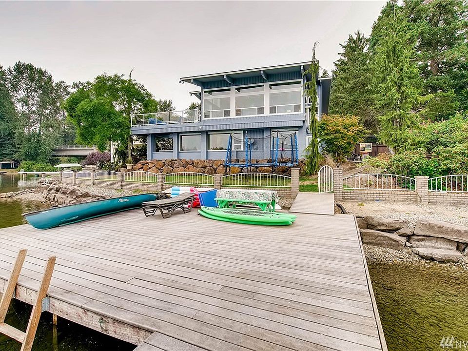 100'+ of Lakefront Luxury. 180 degree Gold Coast views. Vaulted ceilings & hardwood floors. Kitchen w Wolf range, bev cooler & granite. Living w fireplace & expansive windows. Deck w built in fire pit. Palatial master w sitting room, fireplace, walk-in closet & dual head shower. Bonus/flex room w fridge & wood stove. 2nd master on main w jetted tub & rain shower. Gated entry. Hot tub & outdoor shower. Oversized dock w sep swim platform. New heat pump (AC!), roof, int & ext paint & windows.