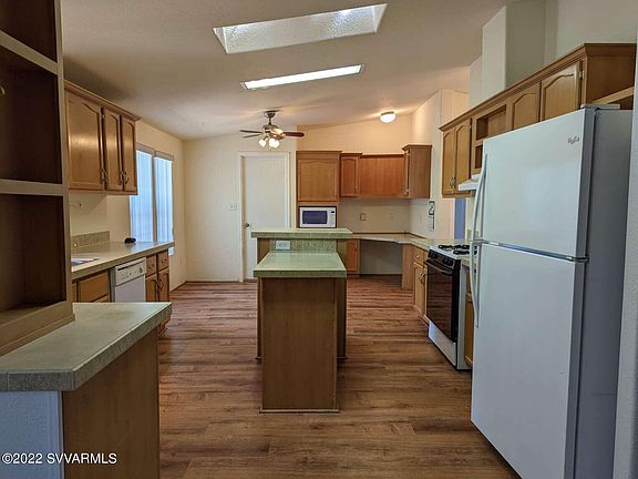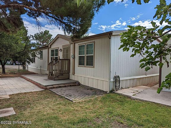 Wonderful very well kept manufactured home in Verde Valley Acres with Irrigation! RV setup is in place. Brand New Tiled Primary Shower! Lots of space. Home is on Camp Verde Water. Wonderful fenced green yard with lots of shade and fruit trees. Apple, Peach, Plumb, etc. Huge Storage Shed. A/C is amazing! Large Kitchen and Dining Area with a spacious great room. You will love this home!