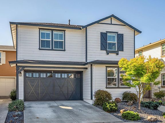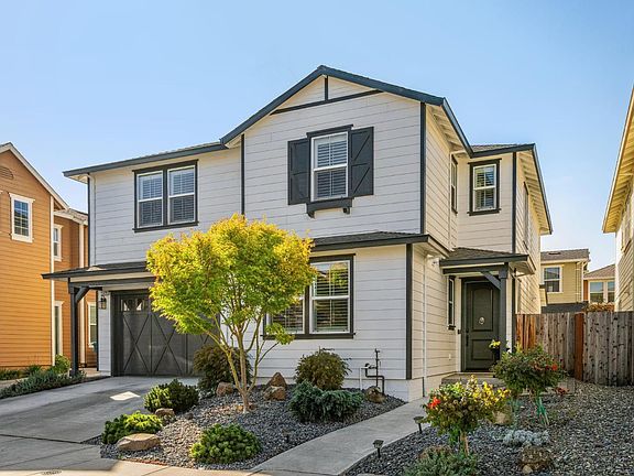 Modern elegance meets comfort in this stunning 7-yr-old home with white siding & dark green accents. TIMELESS CURB APPEAL!. Fresh exterior paint, updated shutters, and a newer front door give it a crisp, stylish look. Enjoy energy savings with owner-owned solar panels, a dual gas/electric heat pump, and central A/C. Inside, you'll find laminate wood flooring throughout, (including the stairs), and an open floor plan perfect for modern living. The home offers 4+ bedrooms, a dedicated office, and a spacious loft, providing flexible space for work, relaxation, or guests. The spacious primary suite offers a serene retreat with abundant natural light. The primary easily accommodates a king-size bed and additional seating with generous closet space and a beautifully appointed bathroom. The backyard is designed for entertaining with a hot tub, built-in seating, and a cozy fire pit, all surrounded by drought-resistant, low-maintenance landscaping. Located in a friendly neighborhood with a large community park and just minutes from Rohnert Park/Penngrove's charming downtown, this home is move-in ready and full of very thoughtful upgrades. This is a rare opportunity to own a stylish, energy-efficient home in a desirable location. Don't miss your chance to make it yours, this one won't las