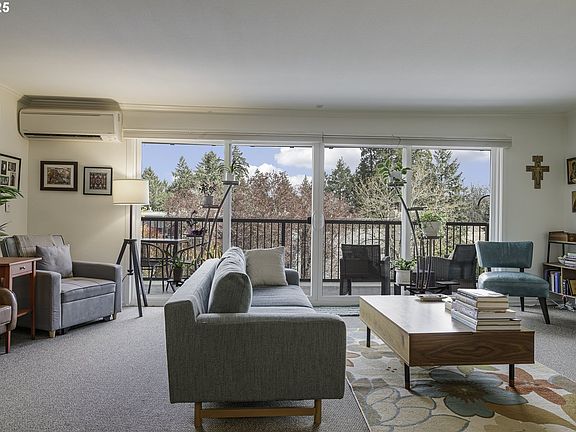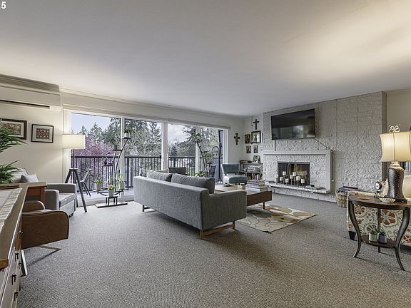 This rare one-level 3-bedroom, 2-bathroom home offers spacious, light-filled living in an unbeatable location. Nestled in a beautifully landscaped community with views of the Willamette River, this stunning condo boasts 414 square feet of covered outdoor living space accessible from the great room and all three bedrooms—perfect for seamless indoor/outdoor living and entertaining. Step inside to find a massive and inviting great room with floor-to-ceiling windows, a wood-burning fireplace, and an abundance of natural light. The sleek, modern kitchen is a chef’s dream, featuring new cabinetry, stainless steel appliances including a Bosch flat top electric convection oven and LG dishwasher, and stylish finishes that blend form and function. The adjacent dining area offers a welcoming spot for intimate meals or lively gatherings. Retreat to the spacious primary suite with its own ensuite bath and walk-in shower. Two additional bedrooms provide flexibility for guests, a home office, or creative space. All bedrooms enjoy direct access to the expansive deck, which spans the entire length of the condo and overlooks serene easterly views and treetop surroundings. Community amenities include two pools, a gym, a locked bike room, dog lawn areas, a meeting room, and a scenic trail connecting to George Rogers Park and the riverfront. Enjoy peaceful mornings on the back lawn gazing at the Willamette River or head just minutes away to downtown Lake Oswego for boutique shopping, fine dining, Millenium Plaza Park, and the local Farmer’s Market. You're even convenient to Whole Foods Market. Additional features include a secure-access building, deeded parking, and a private storage unit. The HOA allows rentals—making this a fantastic opportunity for homeowners and investors alike.