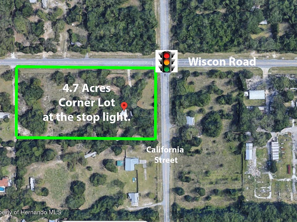 4.7 ACRES at the SW Corner of the stoplight at Wiscon and California Street!! 952 feet of road frontage! Prime development location with this being at the stoplight and near Tampa General Hospital! Should be able to be rezoned to commercial being at the stoplight. This is a growing area with Tampa General and Leyland Preserve Community being built next to TGH. The sale is made of of 2 parcels (Parcel Key 1006681 which is 2.3 acres AND Parcel Key 1006707 which is 2.4 acres). Parcel 1006681 currently has an older mobile home with well, septic, and residential impact fees paid. Both lots are currently zoned AR2. Great location for a gas station, convenience store, medical office, dollar store, etc.