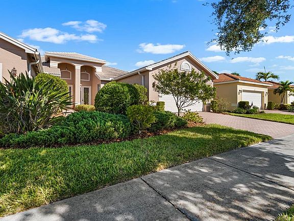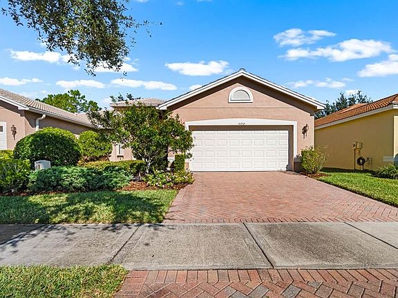 Welcome to your personal paradise in the heart of the gated, luxury resort-style 55+ community of Valencia Lakes! This stunning 3-bed/2-bath/1-car garage Sophia floorplan villa epitomizes comfort and calm. FRESH INTERIOR PAINT! As you approach, admire the timeless appeal of the TILE ROOF, complemented by a PAVER DRIVEWAY and walkway leading to a welcoming covered front entrance. Step inside to discover DIAMOND PATTERN CERAMIC TILE FLOORING throughout the spacious common areas, perfectly blending style with practicality. BRAND NEW CARPET in the bedrooms enhances comfort and warmth. The heart of this home is a lovely kitchen featuring a convenient breakfast bar and eat-in space, ideal for casual dining or entertaining guests. The open layout seamlessly connects the kitchen to the dining area on into the living room with its slider access to the COVERED & SCREENED LANAI with paver deck and ceiling fan! Retreat to the expansive primary bedroom suite, boasting a generous WALK-IN CLOSET and an EN-SUITE BATHROOM that embodies tranquility with its dual-sink vanity, spacious shower stall, and a private water closet. This villa not only offers a picturesque setting and impeccable craftsmanship but also grants access to the exclusive amenities of the resort-style community. From pristine pools to vibrant social activities, every day here promises a lifestyle of leisure and enjoyment. Schedule your private tour today and envision the lifestyle you deserve.