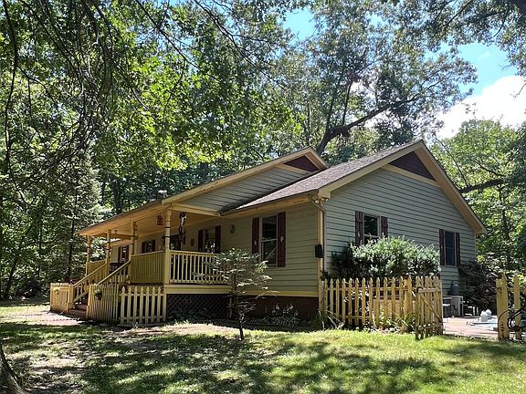Tucked away at the end of a quiet private road, this nearly 2-acre retreat offers rare privacy just steps from Milda's, Union Pier Market, and less than a mile to Lake Michigan's shoreline. The 4-bedroom home sits on a wooded lot overlooking a scenic creek, with two wood-burning fireplaces, an in-ground pool, and a full finished basement. A separate workshop adds flexible space for a studio, creative pursuits, or storage. With convenience and seclusion in equal measure, this is a unique opportunity to own one of Harbor Country's most coveted end-lot properties. ( a couple photos were virtually enhanced to show color change)