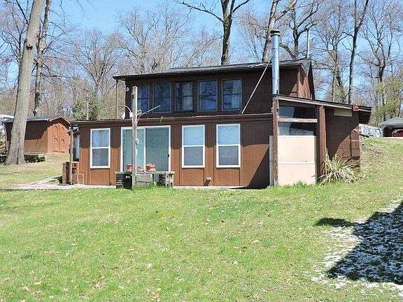 All-year cottage has walkout lower level which adds another 252 SF finished for a total finished area of 972 SF. Large family room in lower level is 21 x 23. Large double lot location with 80 ft on the lake and road by 140' deep. Finch Lake is part of a chain of lakes that connect by boat with about 2/3rds of the shorelines undeveloped and devoted to cedar wetlands...absolutely gorgeous chain of lakes and you'll think you're in Northern Michigan but only 120 miles from Chicago. Finch is 114 acres but connects to a total of 600 acres including Big Fish Lake and E. & W. Saddlebag lakes plus all the interconnecting waterways. Take a sandwich when you decide to take a pontoon boat ride! Municipal sewers too.