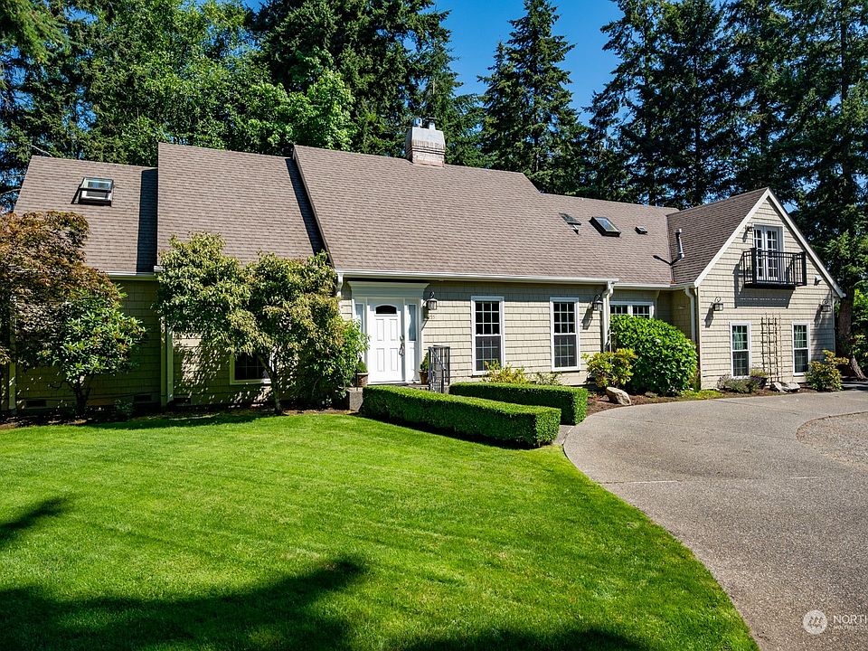 Welcome to this beautiful New England Colonial with circular driveway for arriving guests. Note the shake siding and the accent exterior lighting and the many impressive upgrades added since 2019! There is also an ADU over the three car garage which isn't included in the total square footage, great space for an office or guests. Improvements include: new windows, a generator, garage doors, air conditioning, carpet and interior paint, Sub-Zero refrigerator and Miele gas range, two new water heaters, new washer and dryer in the main home and also in the ADU, a sprinkler system, and a hot tub off the master bedroom. The back patio is shaded and the yard is full of sun, a perfect place to relax and enjoy the seasons.