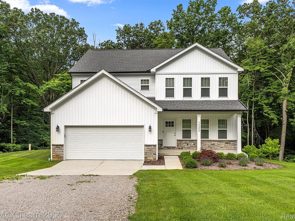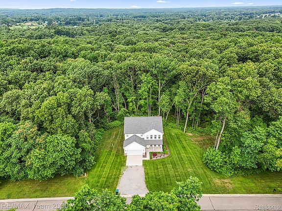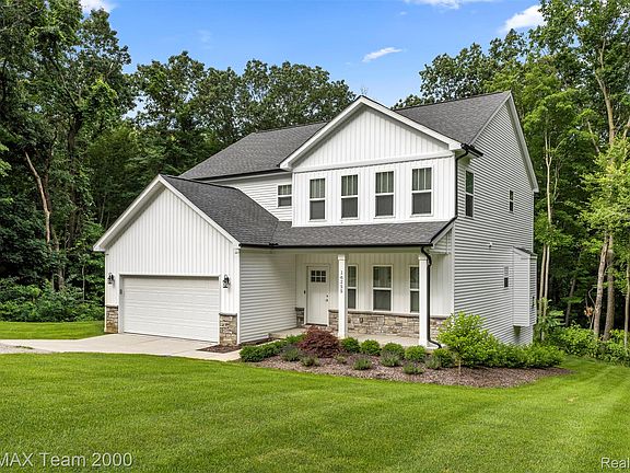 Escape to nature in this stunning custom colonial, expertly crafted by Horizon Homes. Over 2500 square feet! Nestled on a picturesque 1.5-acre wooded lot, this residence offers the perfect blend of tranquility and modern luxury. Step inside and be greeted by the warmth of solid Hickory flooring throughout the entire main level, complimented by soaring 9-foot ceilings that create an open and airy ambiance. The designer kitchen is a chef's delight, featuring elegant 42-inch upper cabinets and ample space for culinary creativity. This home is built with quality and comfort in mind, boasting 2x6 wall construction for superior insulation and a high-efficiency Bryant furnace and A/C system for year-round comfort. Relax by the cozy gas fireplace with its custom surround, or enjoy the convenience of a dedicated mudroom built-in. Second floor laundry room. Large primary bedroom with a walk in closet and primary bathroom. Reverse osmosis, water softener with iron filtration. Sod in front yard and underground irrigation system for the entire lot. The list goes on and on. The possibilities are endless with a walkout basement, ready to be transformed into your ideal living space!