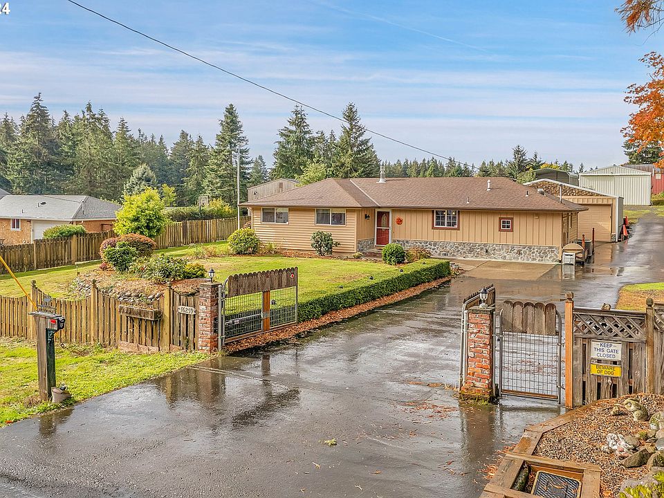 Dreaming of getting just outside the city and finding a move-in ready home on your own little piece of land with a large shop and a gardeners' oasis? Welcome to this charming single-story home with 3-bedrooms, 2-baths, nestled on .69 fully usable acres. This home features Central AC, Central Vacuum, Built-in Appliances, New propane fireplace and new paint throughout.Rain or shine, relax under the covered back porch. The spacious yard is fully fenced and has an automatic gate entry. Tons of room in the driveway for extra parking, a detached one-car garage sits just behind the home that can be used for parking or as extra storage space with an attached workshop/office space. But wait, we're not done yet...This property also includes a 24x36 heated shop, additional RV parking, a tool shed, a greenhouse, and a well-established garden including fruit trees, berry bushes and raised garden beds. This lovely home is a fantastic opportunity in Oregon City. Don’t wait too long or someone else will snaps this up! OPEN HOUSE Sat: 11-2pm, Sun: 11-2pm