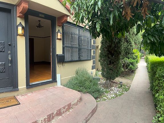Charming vintage 20's Spanish revival architecture building in 100 year old planted courtyard setting This lovingly restored apt has all its original unique features in tact with upgraded ceramic tile and resurfaced tub and sinks and new plumbing hardware . Quiet shady front room with side door and ample closet space. Vintage Chambers gas stove . Trendy kitchen with built in breakfast nook Hardwood floors old school deep bathtub and pedestal sink Great central location in East Hollywood near Western Subway and bus lines near and well as markets and restaruants Owner pays water Tenant pays gas and electric as well as a trash fee to the city who runs trash pickup