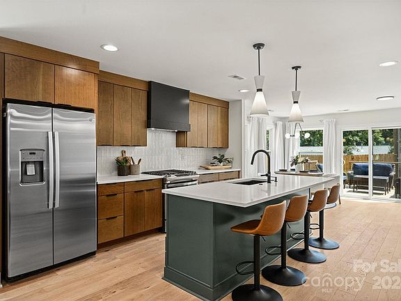 Come and see the newest mid-mod modern rebuild by QC Flippers. This 3bd,2ba gem has been reimagined with meticulous care, featuring open-concept living inviting you to experience comfort and style, creating an ideal setting for entertaining. The heart of the home is the luxury kitchen, equipped with soft-close cabinetry, sleek stainless appliances, elegant quartz, designer backsplash, and oversized island-perfect for both casual and gourmet cooking. The primary suite, complete with oversized shower and spacious walk-in closet is split from the thoughtful design layout including 2 additional beds, a full bath, and convenient walk-in laundry/utility room. Situated just minutes from Uptown, Midwood, and NoDa, every detail has been attended to, including new framing, windows, insulation, HVAC, plumbing, electrical, floors, drywall, and roof. Enjoy the outdoors with a covered porch, back deck, and a fully fenced yard-everything you need for move-in ready perfection! 8/3 open house 930-1130