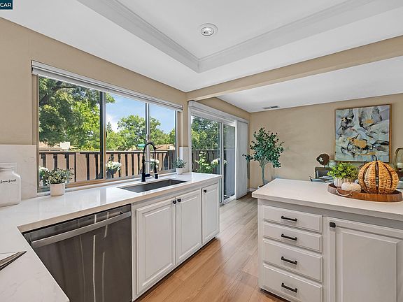 Beautifully updated townhome in the desirable Countrywood neighborhood of Walnut Creek! Minutes from shops, restaurants, parks and 680 freeway entrances. The detached two car garage creates a private entrance to the home. A formal dining and spacious living room welcome you as you enter. The kitchen has been fully upgraded with new countertops, newer appliances and modern hardware. A breakfast nook is just off the kitchen and looks out to the back patio. Plantation shutters throughout the downstairs. The modern half bath and laundry with a generous amount of shelving, round out the downstairs. There is ample storage throughout, with hallways closets upstairs and downstairs. Fresh carpeting leads you upstairs to the bedrooms. Three well-appointed bedrooms share a bathroom featuring a new dual-sink vanity and shower over tub. At the end of the hallway is the primary suite. Natural light pours into the bedroom and bathroom through the large window and skylight. The bright, white primary bath also features dual-sink vanities and a laundry shoot to the below laundry room. The patio is charming, with space for lounge chairs off the living room and outdoor dining area off the kitchen. The perfect amount of flowers and landscaping line the edges of the patio. Steps from community pool.
