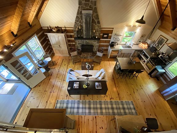 Clifftops Bluff Cabin , ready for your dreams. A perfect weekend retreat with 3 bedrooms and 3 baths. A stunning sun porch with vaulted wood ceilings. Views from 3 sides, simply relaxing to enjoy the views. Lower deck area at the bluff with views of the Dripping Springs Cove. Overlooking a protective forest. Sit back and listen to the waterfalls below. Open vaulted ceilings in family room and kitchen combo. 2 bedrooms on main with large open loft bedroom with bath.