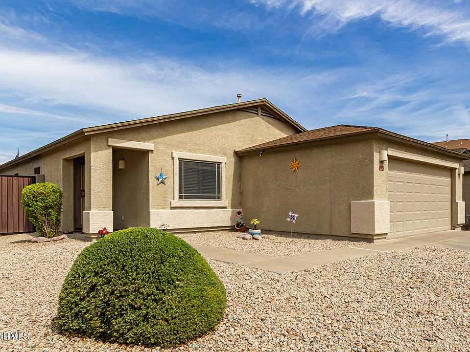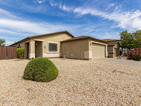 Beautifully maintained 3-bedroom, 2-bath single-story home nestled on a corner lot in the fast-growing & highly desirable San Tan Valley community! The oversized lot includes an RV gate, 15 tons of gravel desertscaping, a gated back courtyard, and a sparkling pebbletec pool with a walkout island for lounging. Mature sweet orange & lemon trees, evergreen turf, & patio shades create the perfect outdoor dining, lounging, or BBQ setup. Step inside to a spacious, open concept layout filled with natural light sourced from 10 solar tubes. Kitchen appliances only 2 years old. Exterior & Interior painted in 2019. Each bedroom is generously sized, & two feature walk-in closets, making storage a breeze. New hot water heater in '24. Custom storage cabinets & epoxy coating in garage.