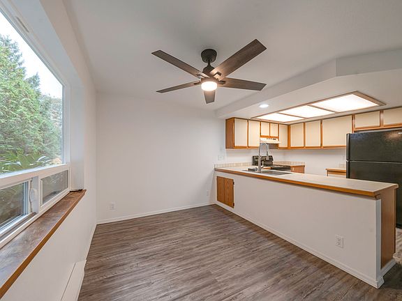 Welcome to this beautifully updated, move-in ready ground-floor home in Heritage Village! Enjoy luxury vinyl plank flooring, a cozy wood-burning fireplace, and the convenience of an in-unit washer and dryer. The spacious primary bedroom features a walk-in closet with Jack & Jill bathroom access. The open-concept layout includes an open kitchen with a breakfast bar, a dining area, and a comfortable living space that opens to a private patio with storage and serene, park-like surroundings. Two parking stalls included and W/S/G included in rent. With easy access to I-405, Hwy 167, Renton Landing, Boeing, and Sea-Tac Airport, this is a commuter's dream!