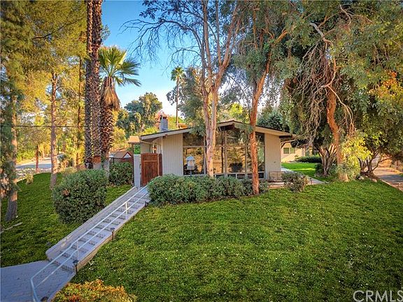 Mid-Century Modern meets Farmhouse! This beautiful, custom home is hidden away on one of Redlands most exclusive and quiet streets. Check out the virtual tour we have available for this lovely 2100 sqft. 4 bed. 3 bath single story home. The home has many new features that include a new kitchen, butcher block counter tops, farm sink, glass subway tile, custom cabinetry with soft closing doors and a stainless steel 5 burner gas stove. Newly remodeled bathrooms and laundry room. There are new windows throughout the home that are just a few years old. These are only a few custom touches that you will find as you walk along the natural wood floors. Enjoy a warm wood burning fireplace with family and friends in the large living room while taking in the views of orange groves, palm trees, and mountains. The four bedrooms along with bonus room will accommodate a large family, office or provide enough space for guest as this home is inviting to everyone. The electrical, exterior paint, Stucco and Fencing are a year old. The roof, seamless rain gutters and concrete walk ways are just a few years old. Take a refreshing swim in the beautiful salt water pool and spa with a Pebble Tech bottom that are located above the street level giving you privacy as you entertain your guests. Feel like getting in the spa after an evening out? WiFi enabled spa controls let you turn it on during your drive home making it ready to soak in after a long day away.
