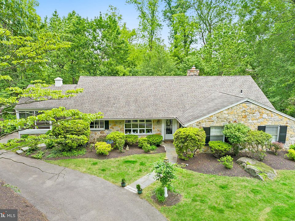 Classic Stone Cape in Prestigious Main Line Setting Beautifully set on over an acre surrounded by nature and multi-million-dollar homes, this classic stone Cape offers timeless charm and modern updates. Rolling lawns, majestic trees, and wonderful vistas create a private and peaceful setting. The stunning living room features a fireplace and a wall of windows overlooking the property. Formal dining room and a newer, well-appointed kitchen with stainless steel appliances and granite counters. Cozy paneled den and an oversized screened porch provide ideal spaces for relaxing or entertaining. Three main-floor bedrooms, including the Primary Suite with an updated ensuite bath and large shower. Updated hall bath with tub. Upstairs offers two very large bedrooms, an updated hall bath, and ample attic storage. The finished, walk-out lower level adds significant living space and flexibility. Attached two-car garage. Impeccably maintained with numerous updates: HVAC system (less than one year old), newer roof and septic. Located in award-winning Lower Merion School District. Convenient to major highways, shopping, and dining. A wonderful opportunity to own a beautiful well cared-for Main Line home in a premier location.