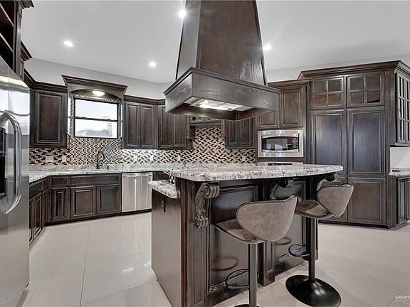 Welcome Home! Located in the highly desirable community of Tuscany Village, this stunning home offers 3 spacious bedrooms, 2.5 baths, private office, media room, and a generous living area. The gourmet kitchen features granite countertops, beautiful custom cabinetry, stainless steel appliances, and a custom backsplash. The home boasts soaring decorative ceilings, upscale lighting, and porcelain tile flooring throughout. The open floor plan is ideal for entertaining. The primary suite includes a spa-like ensuite bathroom with a relaxing soaking tub, double vanities, and two large walk-in closet.  Two car garage offers tile flooring and level 2 EV charger. The covered patio overlooks a sparkling pool and expansive fenced backyard. Zoned to Sharyland ISD!!!