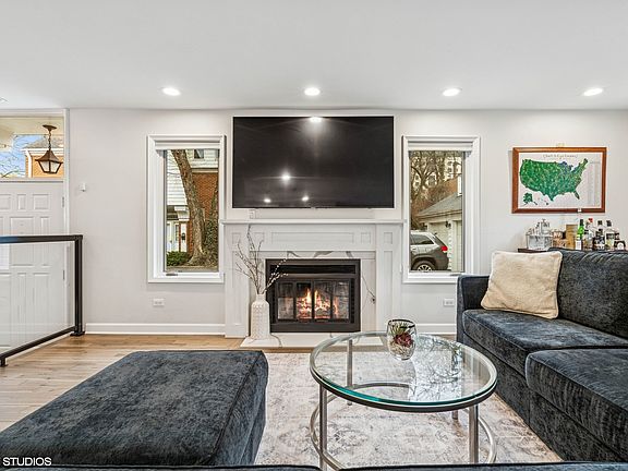The perfect 2-bedroom, 2.5-bathroom townhome in East Lincoln Park awaits. This meticulously maintained residence offers two spacious levels of comfortable, refined living. Step inside to a welcoming foyer with access to a large coat closet and powder room. The open floor plan features a generous living room with a gas-start fireplace, a large dining area, and abundant windows that fill the space with natural light. The renovated kitchen (2019) includes an oversized quartz island, ample cabinet storage, and stainless steel appliances. Just off the kitchen, you'll find the laundry and mechanical room with a side-by-side washer and dryer (2023). Recent updates include a new humidifier (2025) and water heater (2022) to ensure year-round comfort. The private back patio, complete with an attached gas grill, offers plenty of room for entertaining and summer barbecues. Upstairs, the primary suite showcases cathedral ceilings, excellent closet space, and flexibility for a home office or nursery. The ensuite bathroom, updated in 2022, features marble finishes, a double vanity, walk-in shower, and private water closet. A second full bath includes a soaking tub beneath 10-foot ceilings. The second bedroom also enjoys 10-foot ceilings, two closets, and a wall of windows with custom blinds (2020). For added peace of mind, the home is equipped with a built-in security system connected to the local police department. Additional features include a full attic for storage, parking for two cars (1 garage, 1 exterior,) and a finished studio above the garage.