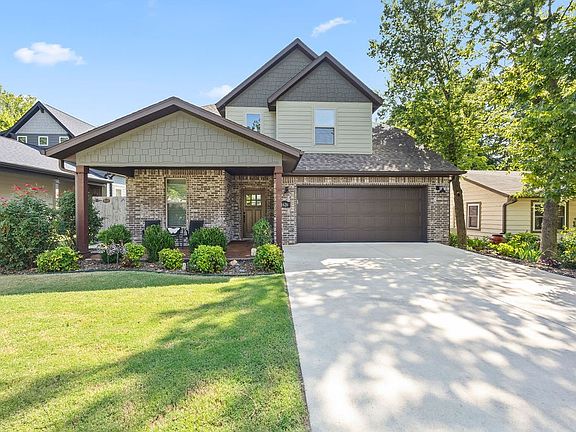 Ravishing home in the Parksdale Subdivision! Modern elegance w/ wonderful natural light create a warm & inviting ambiance. Expansive open living space features vaulted ceilings w/ stunning wood beam accents and a charming gas-log fireplace. Seamless flows into eat-in kitchen and dining w/ ss appliances, tiled backsplash, pantry w/ barndoor and center island. Granite countertops featured throughout. Primary bedroom located on main level, has beautiful wood accent beam, walk-in closet w/ built-ins, custom tile shower and dual sink vanity. Spacious bedrooms located upstairs. Private fully fenced backyard inc covered patio w/ for relaxation and outbuilding w/ elec gives space for projects. Adorable bridge leads you to wooded area. Turning sunlight into savings with energy-efficient solar panels slash your energy costs-from around $185 to only $15, per month. Prime location, close to shopping, dining w/ U of A only 3 mins away. Greathouse Park trails are moments away. Easy access to both I-49 & 71-B. Must see today!
