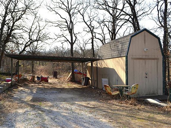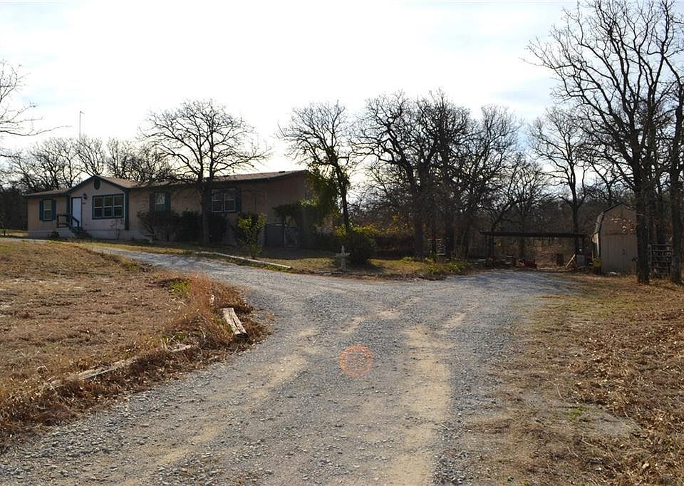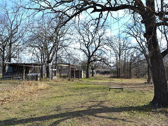 Pull up to this 6 plus acres and feel the secluded setting, land has lot's of character, from scattered trees to heavily treed Oaks. Property has ravines and hilly. Plenty of fruit trees to enjoy and a garden area. Love chickens? There is a coop, several small lean two's around for multi purpose usage, Storage barn building. Very scenic views from back porch. The house has fabulous views from inside looking out to the property, with an open concept living and split bedrooms. This house is light and bright! It will need a new roof and DOES have water damage, noticeable sheetrock damage inside the several rooms. Owner will not repair. BRING ALL OFFERS