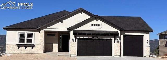 The Copperwood in Home Place Ranch is a large, open-concept ranch-style home in Monument offering a plethora of options to create your ideal home. It blends practicality and style in perfect harmony to create a home that is truly unique. The main level includes 9’ ceilings with 11’ volume ceilings in both the great room and kitchen. An included fireplace in the great room creates a sophisticated living space everyone will enjoy. A large deck adjacent to the great room and breakfast nook gives you the perfect place to take advantage of your unmatched mountain views all year long. The primary bedroom and bathroom includes a 4-piece spa bath and oversized walk-in closet that connects to the laundry space. The main level features a primary bedroom and bathroom, Secondary Bedroom and optional guest suite with a private full bath, optional powder bath, owner’s entry, and easily accessible laundry room. The kitchen includes an impressive walk-in pantry with a dramatic island and double oven, sure to make the chef in your life swoon. The finished basement has a large rec room, two bedrooms and one bathroom, and an additional bedroom with attached bathroom. With the addition of the main level guest suite, you also get an additional bonus room in the bonus that could be used as a home gym, office space, or much more! The Copperwood also features a multitude of garage options including 3-car, 4-car, toy garage, and RV options perfect for car enthusiasts!