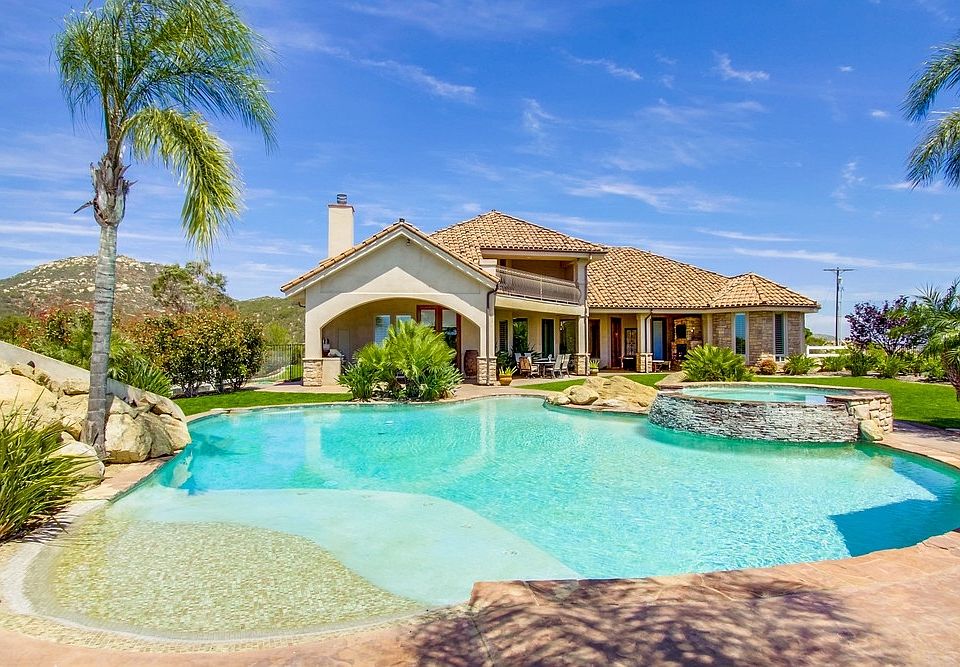 Offered at $1,295,000-$1,395,000. This exclusive hillside estate is located on over 9 acres with stunning panoramic views of mountains stretching all the way to the ocean. Designer touches and upgrades inside and out. Gourmet Kitchen featuring modern Viking appliances, granite counters, breakfast bar & custom cabinets. Bright, spacious Master Suite boasts huge soaking tub, separate shower, dual vanities & convenient entrance to outdoor fireplace. Resort like yard with pool, spa. See supplement for details