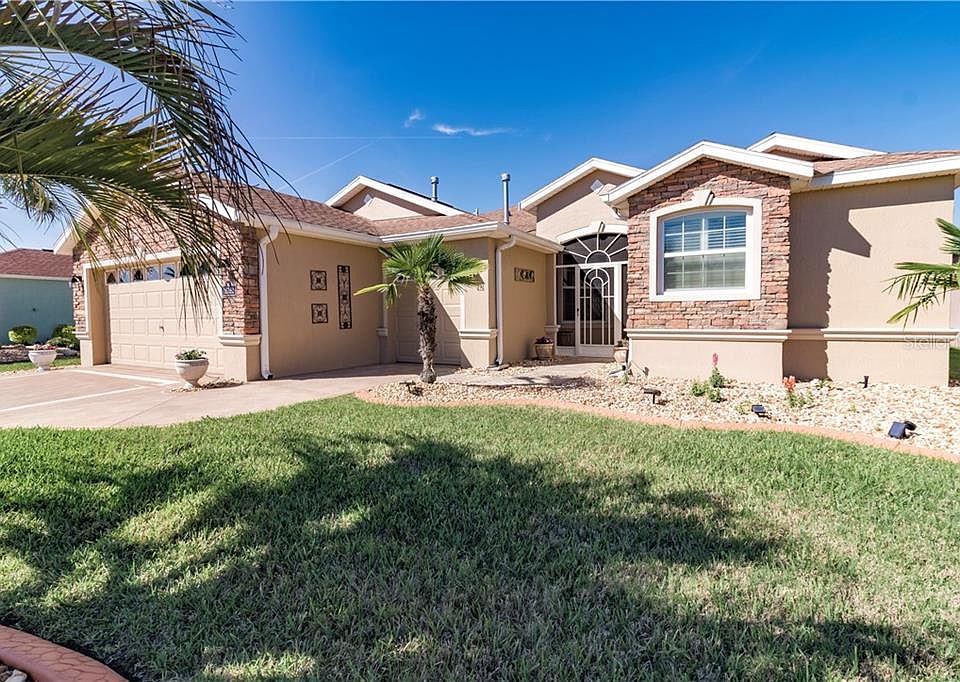 Live your Retirement Dream in the Gated and Gorgeous 55+ community of SummerGlen. You will instantly fall in love with this well cared for and immaculately maintained Venice Floorplan as soon as you arrive. It all starts with beautiful curb appeal to include a stacked stone front, painted drive-way, lush palm trees, concrete curbing around the pretty flower beds, paver walkway and a screened entry front door enclosure. Once inside of this 3 bdrm, 2 bath, 2 car garage with additional GOLF CART GARAGE you will notice the tall ceilings, custom paint, decorative fans, roomy living and dining room and be drawn out back to the peaceful back yard setting. Enjoy cooking in the large kitchen complete with Corian Countertops, tile backsplash, newer smudge proof black Stainless Steel Appliances, plenty of cabinets and a separate pantry. Just off the kitchen is a cozy nook with plantation shutter and access to the enclosed lanai. Big Glass Windows run the length of this bright extra living space and is perfect for that afternoon get together with friends. Private Master Bedroom and Bath feature his and her vanities, roman tub, walk-in tiled shower, separate water closet and a HUGE WALK-IN CLOSET for that much needed storage. Spacious guest bedrooms are located on the other side of the home for complete privacy. Awesome laundry room has a newer front load washer and dryer with pedestals, additional upper cabinets and a closet. Other notable features include ALL New LOW-E Windows in 2020, New A/C in 2019, New Hot Water Heater in 2019, Whole House Water Softener, garage floor and walls recently painted. You MUST SEE this beautiful home to appreciate all it has to offer. Its MOVE-IN READY and waiting for YOU. SummerGlen is a Gated Active Adult Community With So Much More For Less... On-Site Restaurant, RV Storage, Grand Hall, Heated Pool and Hot Tub. HOA Includes Trash, Mowing, Edging, WIFI & Cable, & Common Areas. SG Lot 680.