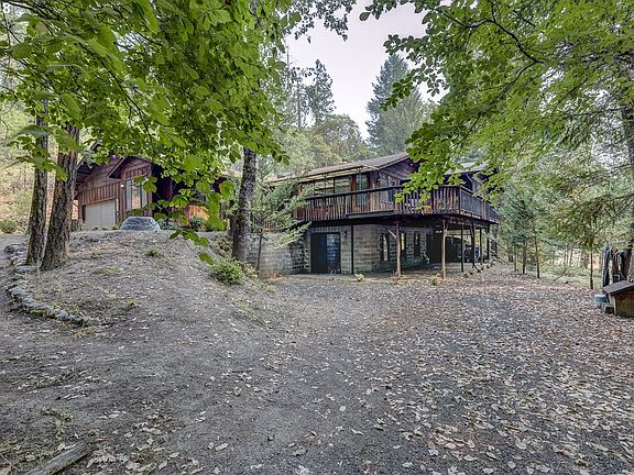 Come live the Oregon dream on this private and peaceful 5.12 acre forested property in Rogue River. The home is light and bright with lots of windows and many skylights. The main floor features a formal living area, 4 bedrooms, 2 full baths, the 4th bedroom has built in cabinets and a desk that would also make for a good home office.