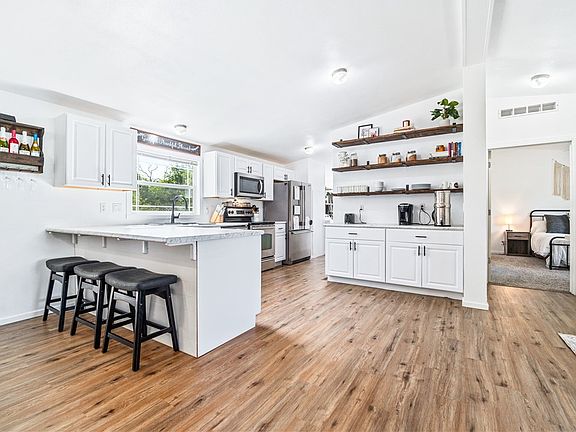 Completely updated, this 3 bedroom, 2 bathroom home in Pea Ridge sits on a spacious 1.69-acre lot with 1,378 sqft of living space. The home is full of updates, including new flooring, AC unit, dishwasher, cabinets, countertops, stainless steel appliances, paint, trim, and refreshed bathrooms. This home has abundant storage, with a walk-in pantry and large closets inside the home and a shed and barn with electric outside. Enjoy a spacious primary suite with a double vanity and walk-in shower. Cozy up to the wood stove in the sunroom, and enjoy peace of mind with the in-ground storm shelter. Step out onto the back deck and take in the serene view. The property is fenced and cross fenced, located in an area with upscale homes. Just a couple of minutes outside of Pea Ridge, this property has no covenants or restrictions. Schedule a tour today!