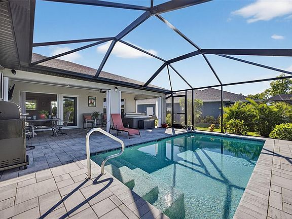 LIKE BRAND NEW! BUILT IN 2023 3 BEDROOM, 2 BATH, 2-CAR GARAGE POOL HOME in the deed-restricted community of Burnt Store Village. Step inside where you will find an open floor plan with contemporary décor and lighting, high ceilings, crown molding, and ceramic tile throughout. The kitchen offers white cabinetry complimented by granite countertops, tile backsplash, stainless steel appliances, closet pantry and large island great for entertaining. Spacious primary suite features ample natural light, his and her walk-in closets and private en-suite bath featuring dual sinks and walk-in tile shower. Split floor plan provides privacy for guests with two additional bedrooms and separate full bath. Outside enjoy the screened lanai with the heated pool/spa overlooking the private backyard with greenbelt and pond views. Northwestern exposure to enjoy gorgeous SWFL sunsets. Nicely landscaped exterior with paver driveway, walkway and lanai for added curb appeal. Additional features include a laundry room, hurricane impact windows, irrigation system, hot tub, and epoxy coated garage flooring. The location of this property is unbeatable, just 20 minutes from downtown Punta Gorda and 30 minutes from downtown Fort Myers. Additionally, it's close to the relaxed waterfront community of Burnt Store Marina, offering access to resort and golfing facilities, waterfront dining, and entertainment. It is conveniently located to the airport, restaurants, shopping, beaches, and award-winning fishing and boating. Don't miss out on this opportunity! Schedule your private showing today!